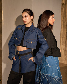 KAYAL Signature All-Pin Black Top & Skirt Set
